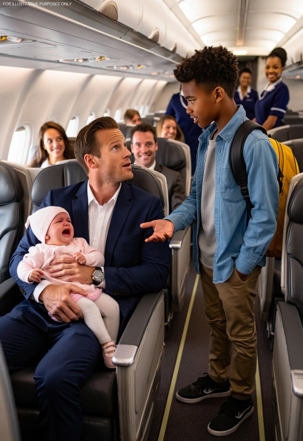 A young flight attendant leaned in, her voice barely audible above Nora’s cries. “Sir, perhaps she is overtired,” she suggested cautiously.