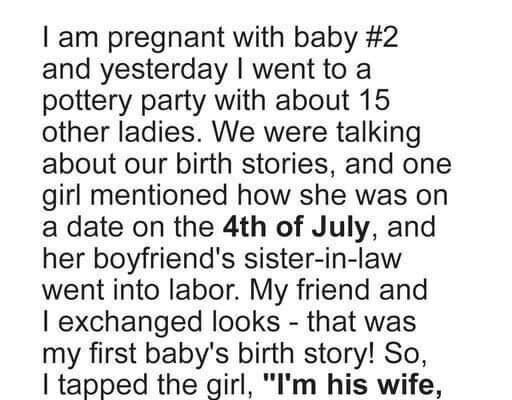 Then one woman began to talk about how she was on a date with her boyfriend when his sister-in-law suddenly gave birth and she had to leave.