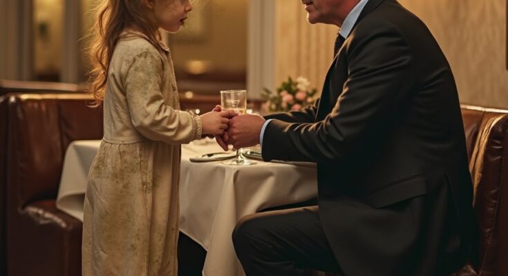 Robert Adams looked down at the ragged little girl standing by his table.She couldn’t have been more than ten years old, her hair tangled, cheeks smudged with dirt — but her big green eyes held a seriousness he couldn’t ignore.