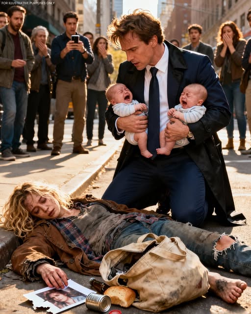 A homeless woman collapsed on the side of the road, her two-year-old twins crying helplessly beside her — until a billionaire stopped to help and froze when he saw the kids looked exactly like him… GT09