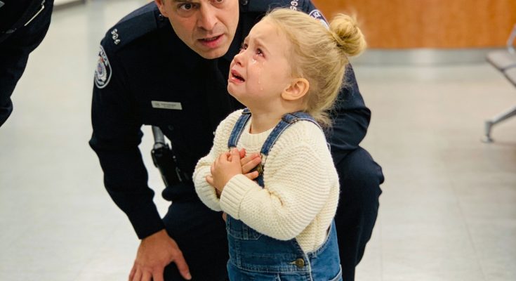 The officer was bewildered at first, but then he couldn’t help but smile. He gently hugged the crying child and whispered to her: