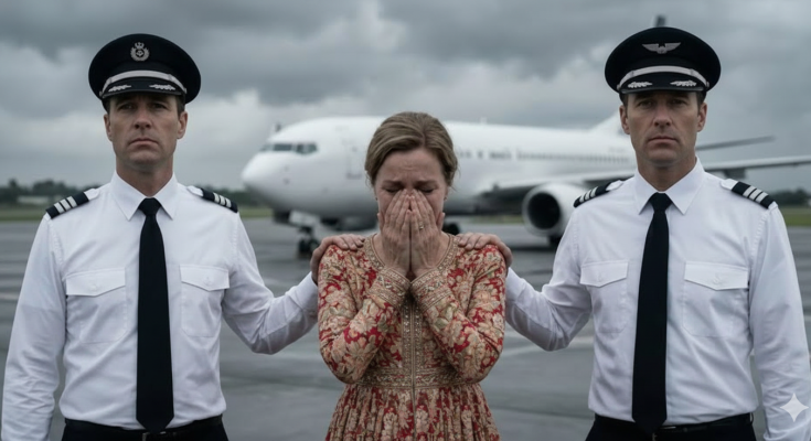 The airplane slowly disappeared behind layers of white clouds, leaving a shimmering trail of sunlight across the runway. Ms. Maria stood silently, her hands still tightly held by her two sons, as if letting go might cause this dream to vanish.