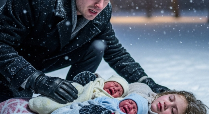 Jack Morrison held the little girl tightly as he ran back to the car. His designer shoes slipped on the ice, but he didn’t stop. In his arms, the three tiny bodies trembled, and he could only think of one thing: I must save them .