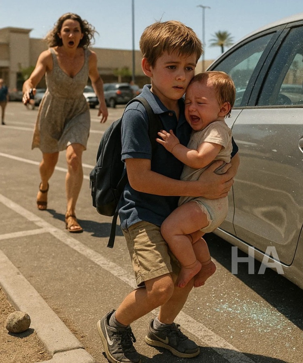The boy stood there, clutching the baby, when a woman’s scream pierced the air—“What are you doing to my car?!”