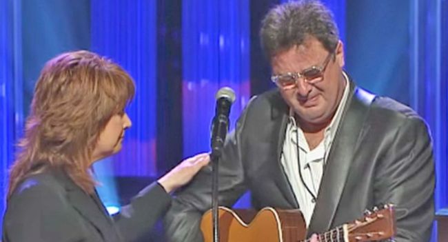 Within seconds of beginning the song, you can already hear the sadness in Gill’s voice, shaking from holding back tears. At one point in the chorus, the performance becomes too much for Gill, forcing him to take a step back from the microphone, allowing Loveless to sing the chorus for him.