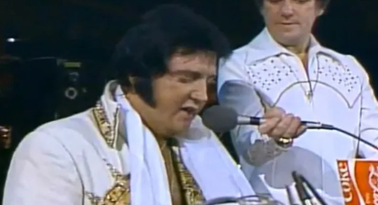 In a haunting and unforgettable performance recorded in Rapid City, South Dakota, in 1977, Elvis sat at the piano — visibly unwell, wheezing, and fragile. It had been more than a year since he had released a studio album, and his manager, Colonel Tom Parker, had arranged to capture this show on film for a planned TV special and live album.