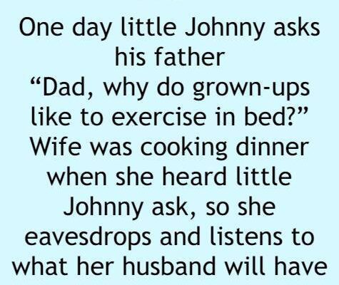 ”Father “hopefully when you get married, it will be your wife” Johnny “but dad, how come our neighbourSally exercises with you”