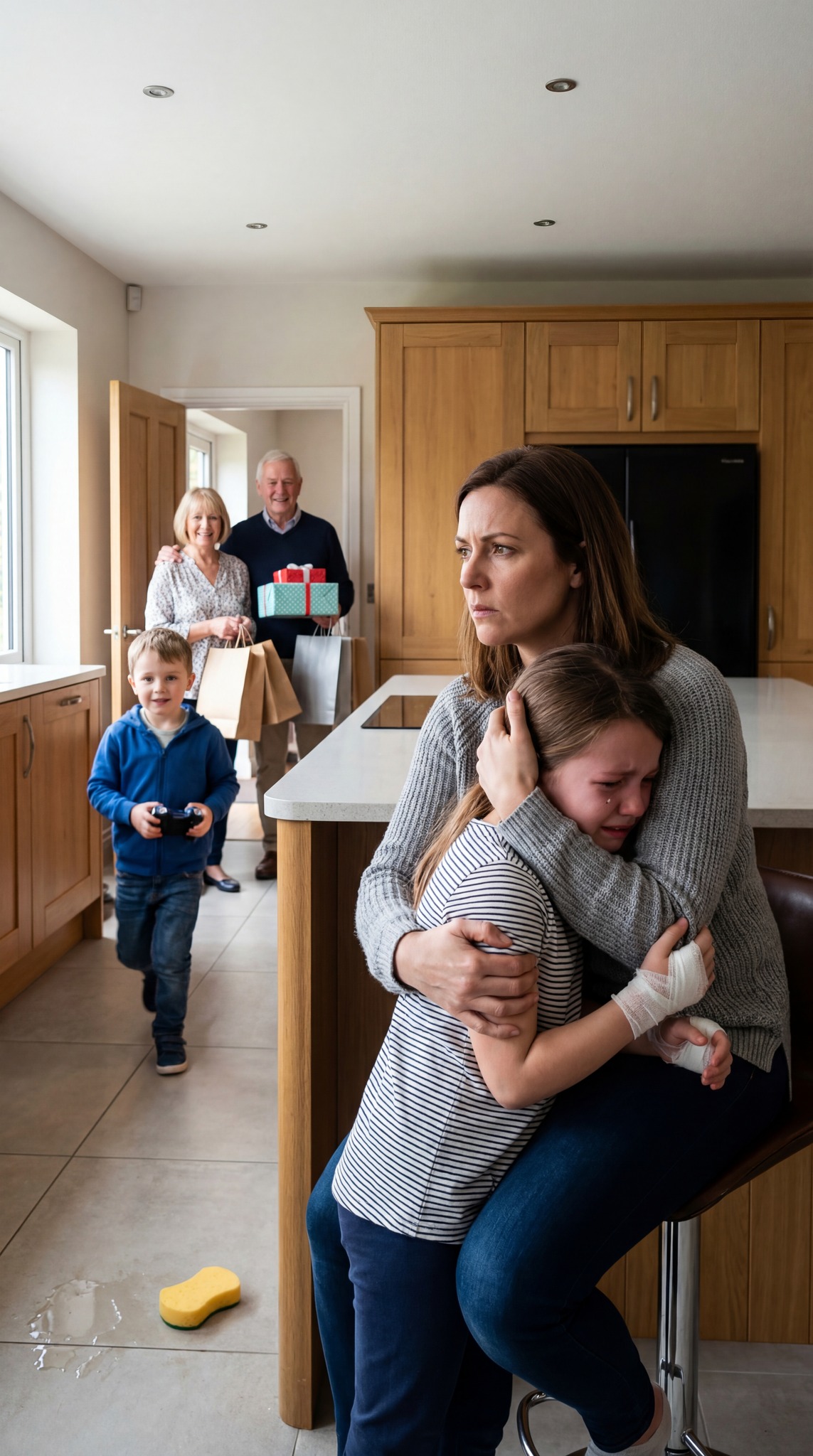 Kevin came home an hour later. The moment he saw Riley hands, something shifted in his expression. He sat beside her and stroked her hair awkwardly.