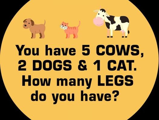 In the fascinating world of puzzles and riddles, some questions are cleverly designed to lead your mind astray. A perfect example of this is the seemingly straightforward question: “You have 5 cows, 2 dogs, and 1 cat. How many legs do you have?” At first glance, it looks like a simple math problem, but underneath the surface, it’s a clever trick meant to deceive. Let’s break down the intricacies of this riddle and explore the art of deceptive questioning.