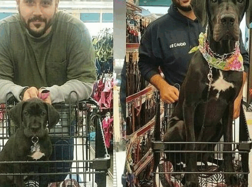 And the cart? Yeah, she barely fits in it now. People stare. Employees laugh. But I still do it. Because it’s our thing now—me, pushing this Great Dane that looks like she could do my taxes, sitting like royalty on a zebra-print blanket.