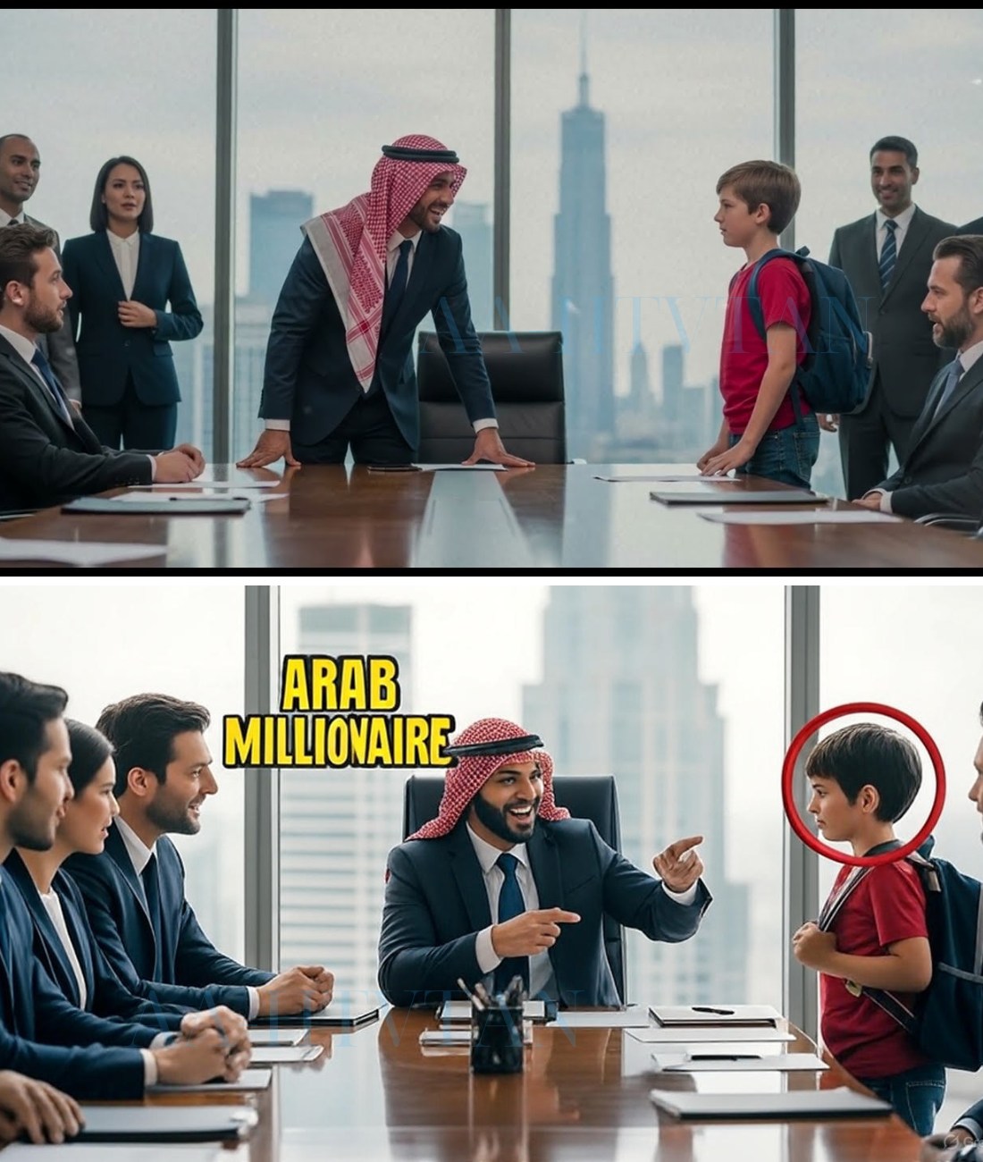 The Arab millionaire rose from his chair. His movements were slower now, more deliberate. He walked around the long table until he stood in front of the boy. No laughter this time. Only respect.