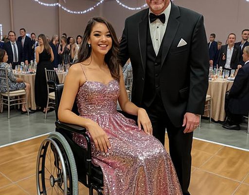 Father and daughter walked the red carpet. The crowd whispered. Some kids watched. Several grinned. Isla was wheeled onto the dance floor by James.