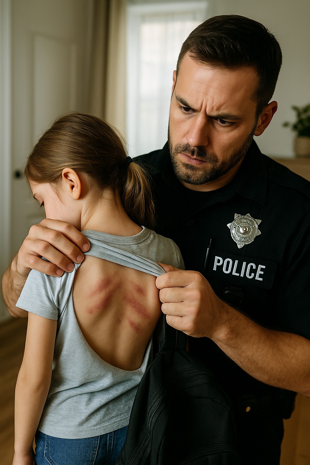 Michael felt ice slide into his veins. He gently turned his daughter around and lifted the back of her shirt. Faint, mottled bruises patterned the skin along her small shoulder blades. His police officer’s mind began to catalog evidence, even as his father’s heart cracked in two.