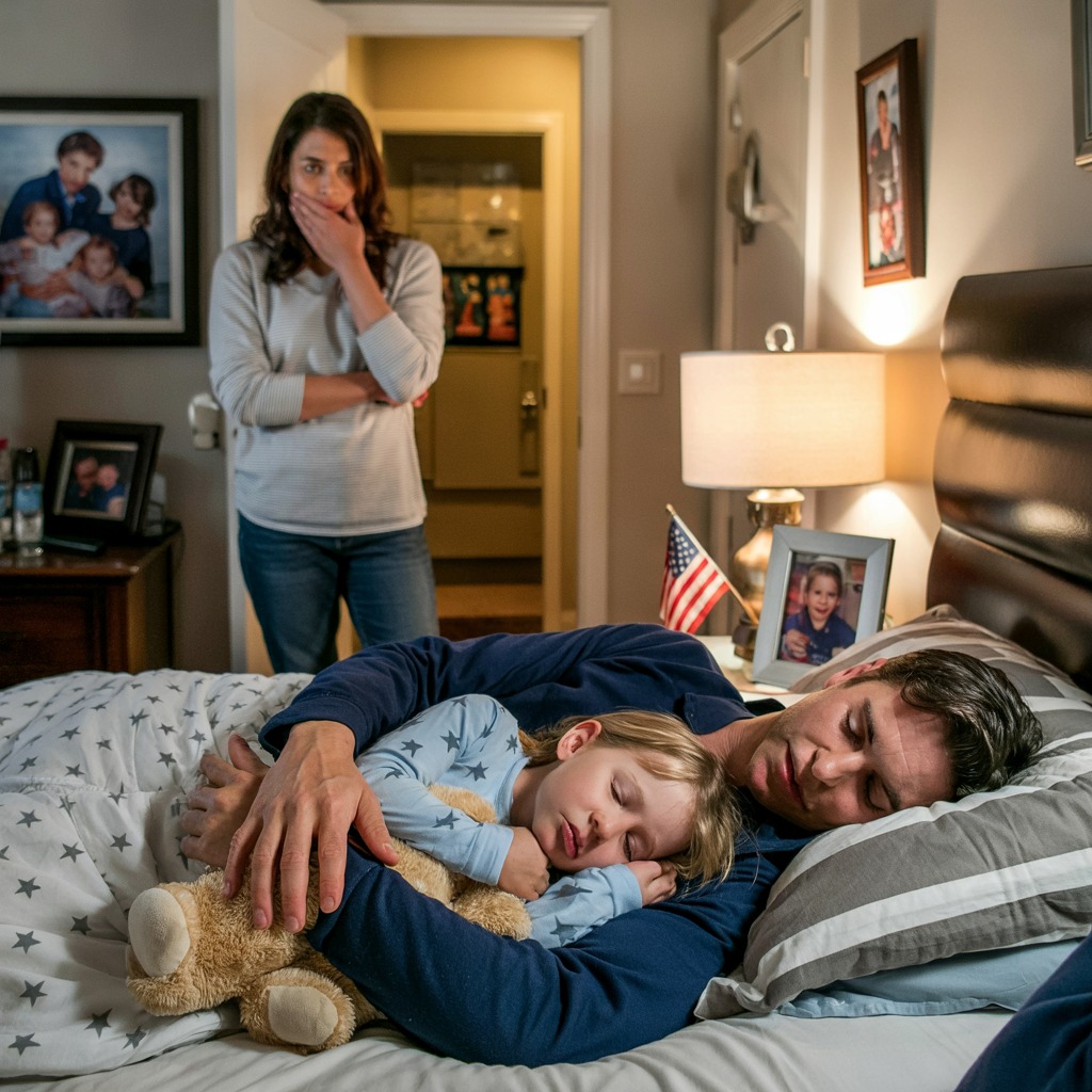 Emily shifted in her sleep, unconsciously pushed toward the edge of the mattress by the added weight and presence. Her small face frowned, disturbed but not awake, her body automatically making room for the intruder it sensed but didn’t recognize.