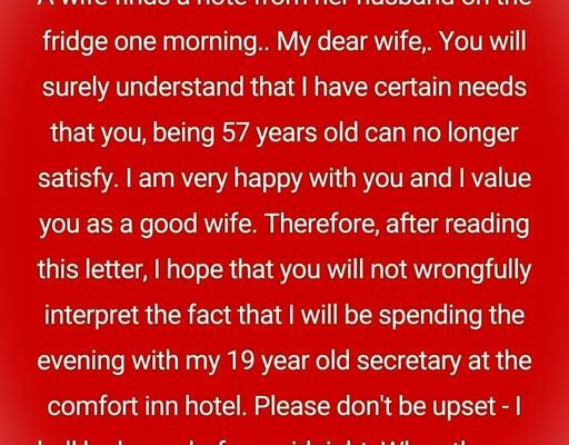 In conclusion, age is just a number, and the ability to deliver a snappy retort is timeless. Here’s to all the math teachers and savvy spouses out there who know how to multiply their points and divide their problems. Let’s raise a metaphorical toast to our sassy, witty wife—keeping it real and keeping it classy, one clever note at a time.