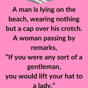 A man is lying on the beach, wearing nothing but a cap over his crotch.