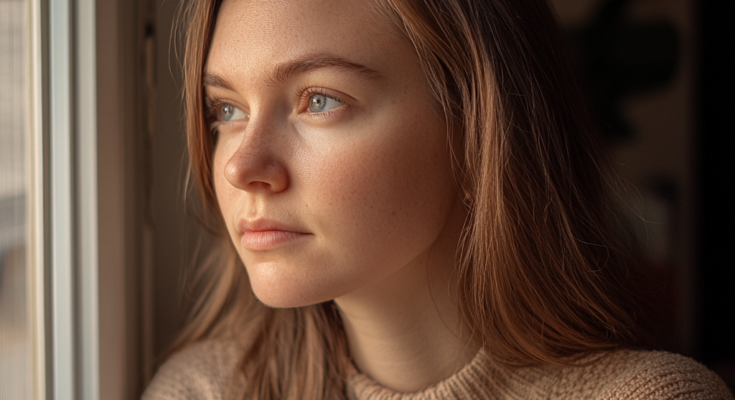 A thoughtful woman looking out the window | Source: Midjourney