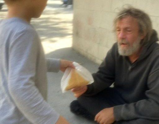 “I told him not to wander too far.” We had just left the library, and I was digging through my bag for the bus card when I looked up—and froze. My six-year-old was kneeling beside a man slumped gently against a building wall, offering his sandwich with both hands.