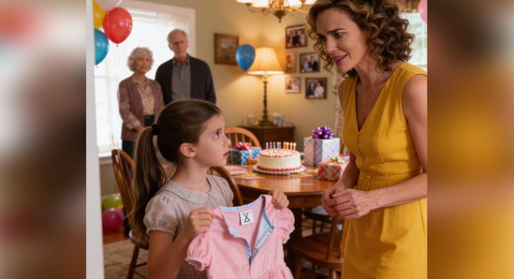 On my daughter’s eighth birthday, my parents gave her a pink dress. She looked happy—until she suddenly went still. “Mom… what’s this?” I leaned in, and my hands began to tremble. There was something inside the lining—something placed there on purpose. I didn’t cry. I didn’t cause a scene. I just smiled and said, “Thank you.” By the next morning, my parents wouldn’t stop calling… because they knew I’d found it.