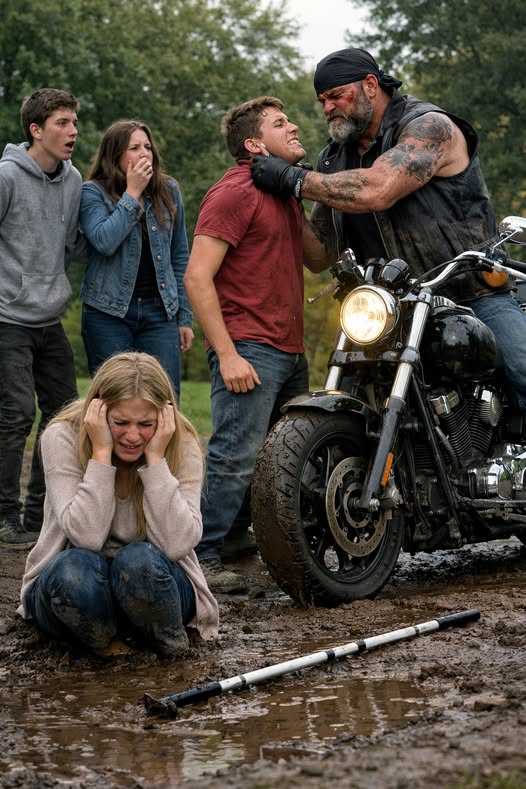 The biker’s eyes, cold and commanding, turned to the boys. “You took her eyes,” he said, his growl low and terrifying. “Now I’m taking yours.”