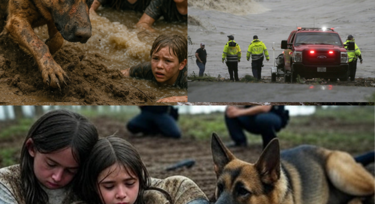 As the rescuers lifted the trembling children from the flood muck, Echo didn’t bark. He didn’t wag. He simply sat. Silent. Frozen. Staring into the eyes of one of the girls — and then let out the softest whimper. One witness described it as “a cry that wasn’t from a dog. It was from something deeper. Like he knew what they had survived.”