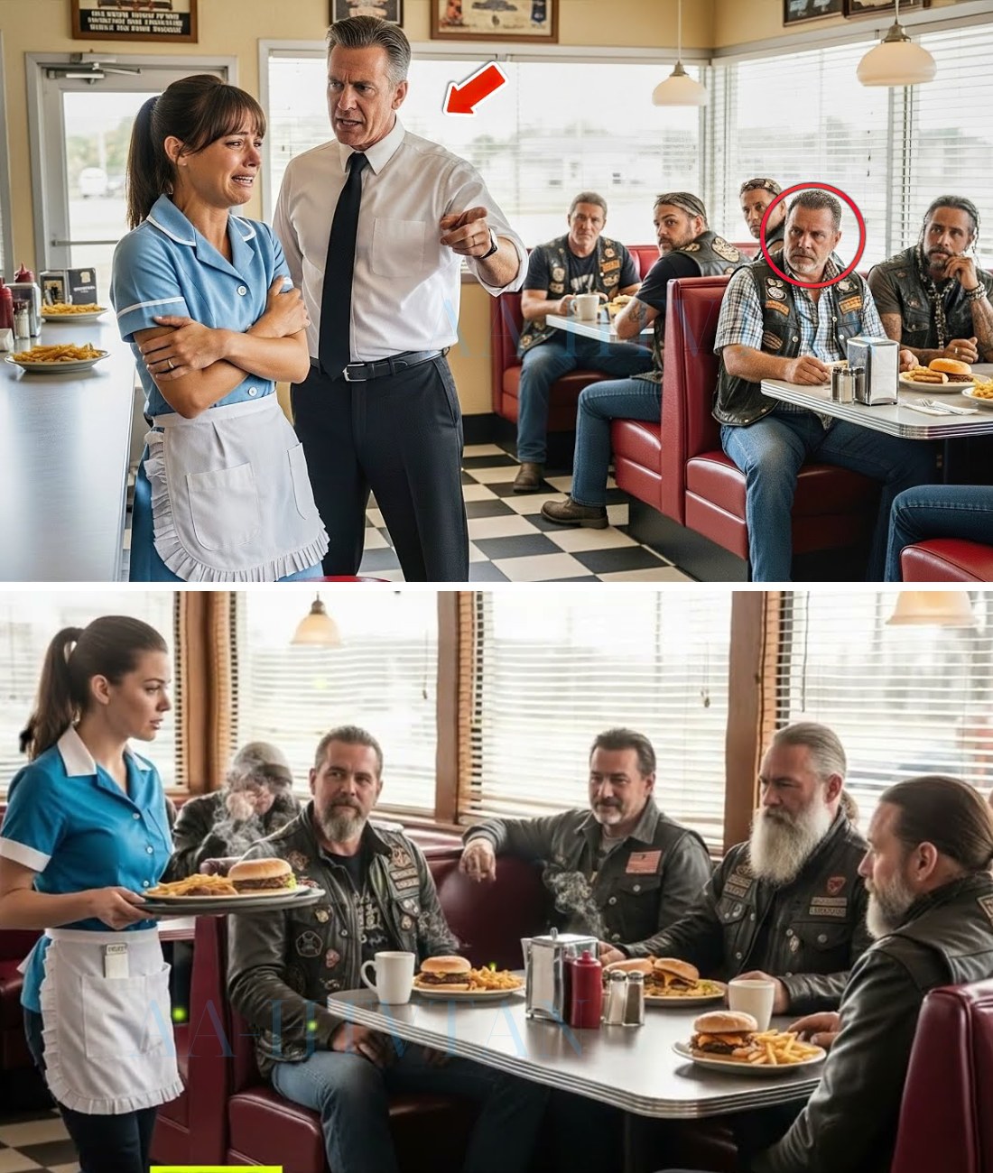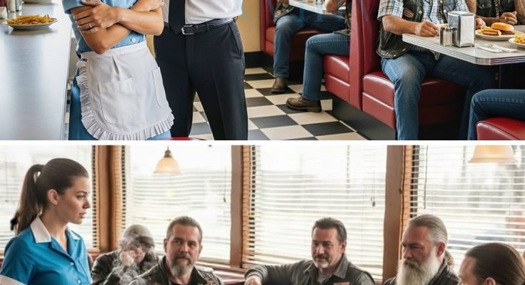 A group of bikers walked in, their heavy boots thudding against the worn linoleum. Leather jackets creaked as they slid into booths, tattoos peeked from beneath sleeves, and the low rumble of their laughter filled the air. The words Hell’s Angels stitched across their backs drew quick glances from the other diners. Forks paused midair. Conversations hushed. A man at the counter muttered to no one in particular, “Don’t serve them. You’ll regret it.”