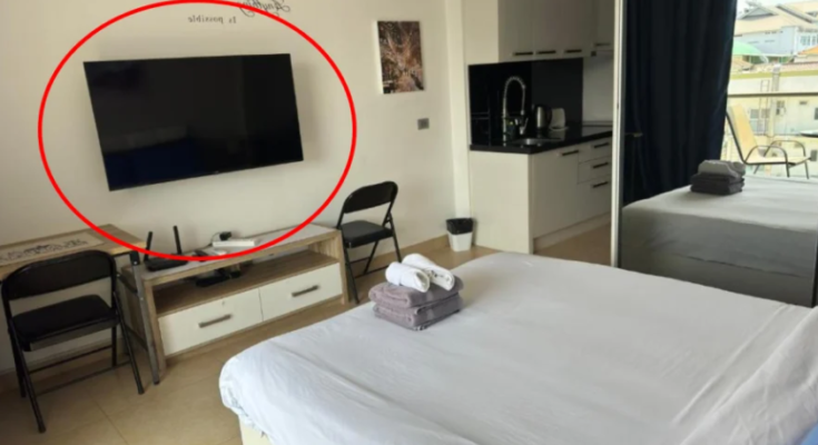 In a hotel room, a television can be considered an essential item, usually arranged in the center of the room, opposite the bed. This is an easy location for hidden cameras to be installed in the room. From the direction of the TV, the camera can easily record images of all corners of the room. This helps bad guys collect information about customers’ activities and privacy.